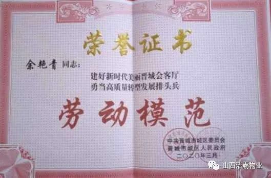 3月29日上午,晉城市城區(qū)2019年度全區(qū)勞動(dòng)模范表彰大會(huì)在在城區(qū)政府中院召開,來自全區(qū)各個(gè)行業(yè)、各條戰(zhàn)線的174個(gè)先進(jìn)集體和223名勞動(dòng)模范受到表彰。我公司工程部主管余艷青同志榮膺“勞動(dòng)模范”稱號(hào)。