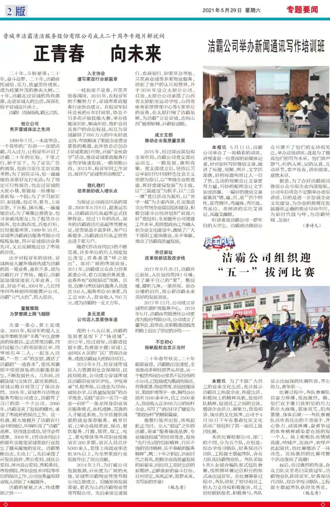 今天是2021年5月29日,經(jīng)過一個多月的緊張籌辦,《山西潔霸》報紙終于創(chuàng)刊啦!這是潔霸人的一件大喜事,也是潔霸人的驕傲!伴隨著《山西潔霸》紙質(zhì)版的內(nèi)部發(fā)行,電子版也同步與你見面了。希望你能通過這個宣傳窗口,更好地走近潔霸,了解潔霸,關(guān)注潔霸,支持潔霸。