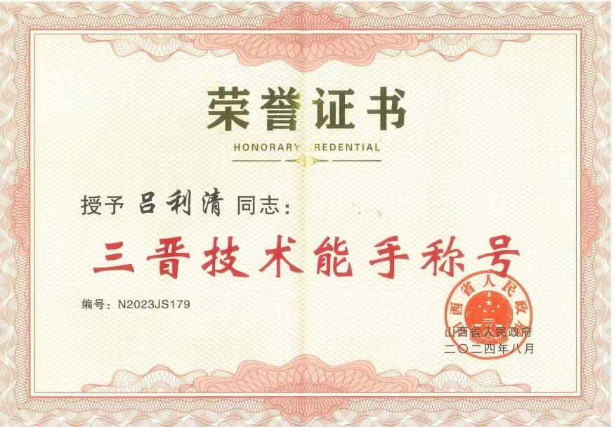 | 我公司呂利清榮獲“三晉技術(shù)能手”稱號(hào) |