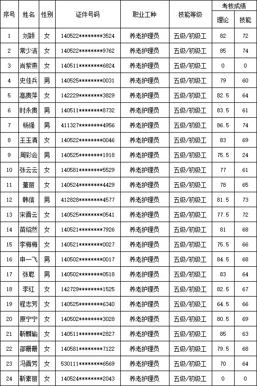 山西潔霸清潔服務(wù)集團(tuán)股份有限公司職業(yè)技能等級(jí)認(rèn)定中心現(xiàn)將2025年11月2日認(rèn)定人員成績公示如下: